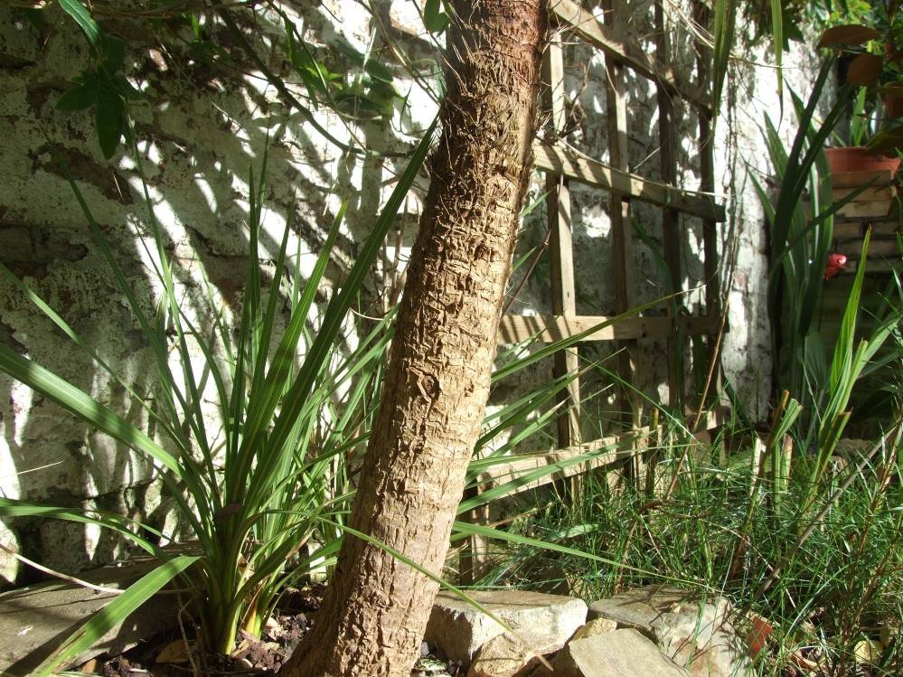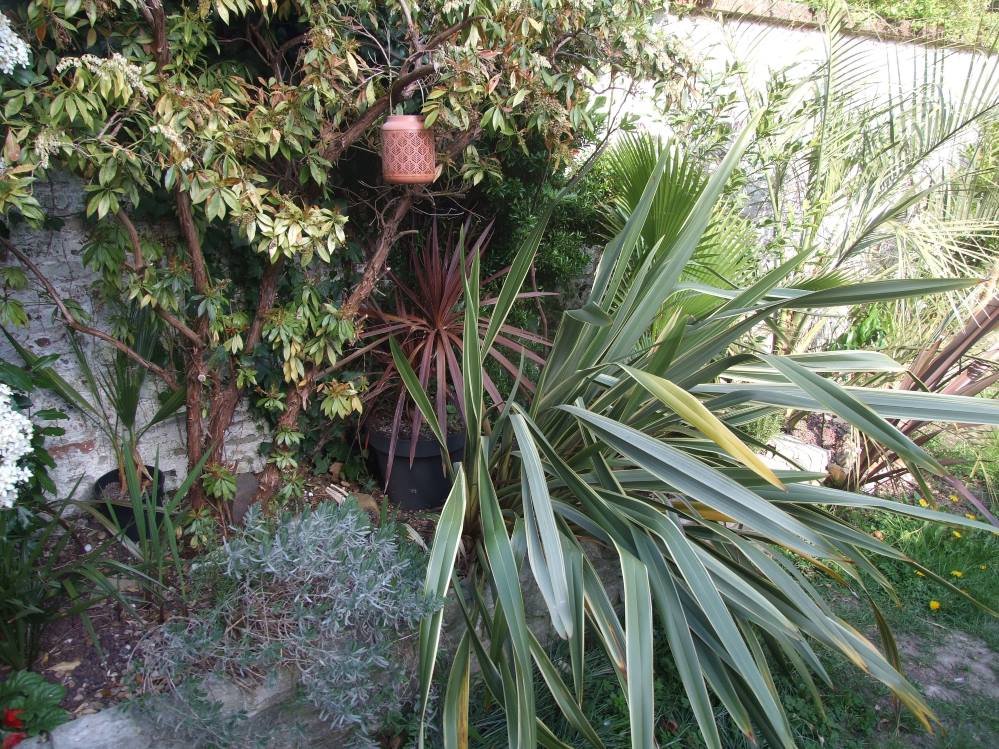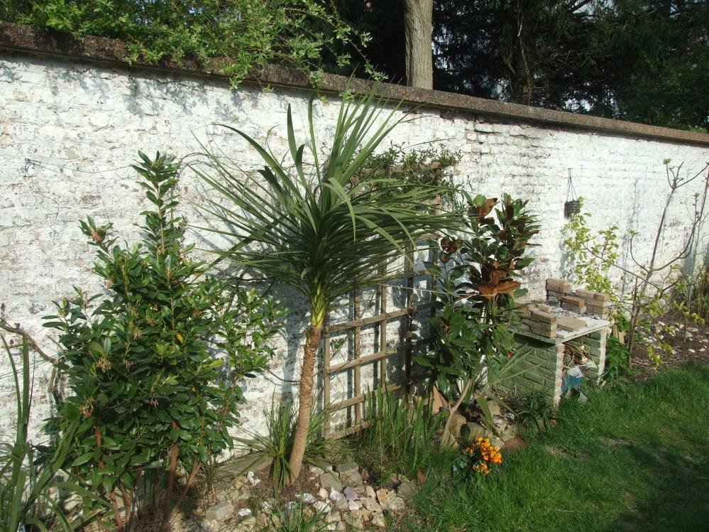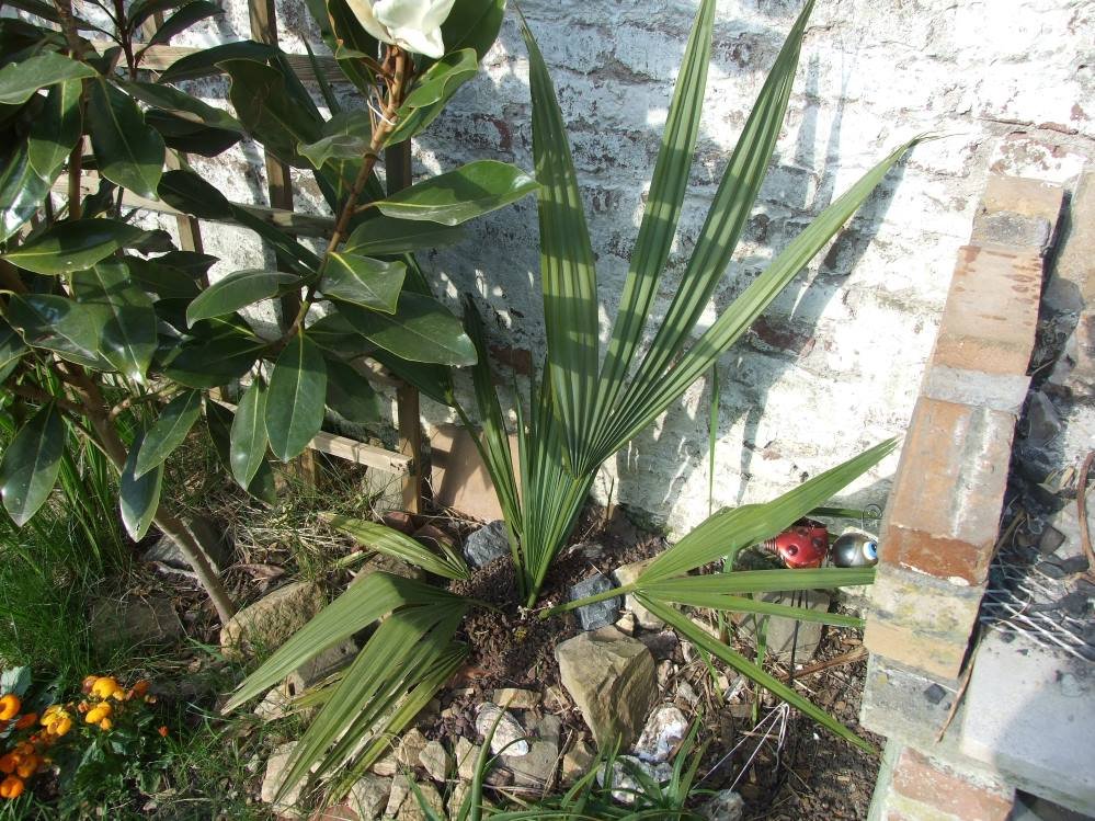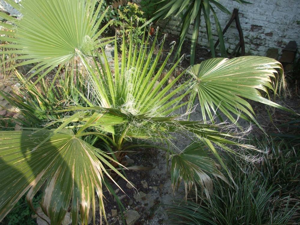 Incroyable mais le filifera acheté chez Aldi pour rien et planté n'importe comment au milieu du jardin s'accroche sacrément, cela fait maintenant deux hivers qu'il pousse là, et sans aucune protection, j'avoue ne pas comprendre pourquoi il tient.