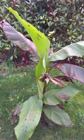 Aujourd'hui, petite journée normale, ciel nuageux, température de 13.9° , ou le trachy ouvre une palme, le musa basjoo refait une feuille et le Kniphofia me fait une jolie floraison !!!