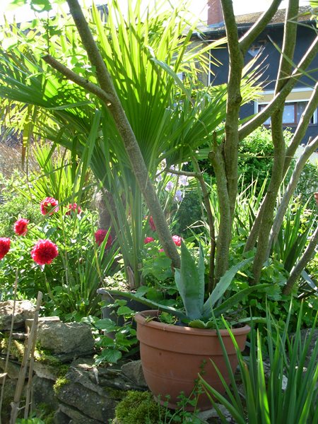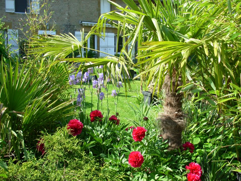 Très joli jardin avec du charme, belle association de plantes rustiques et exotiques :)