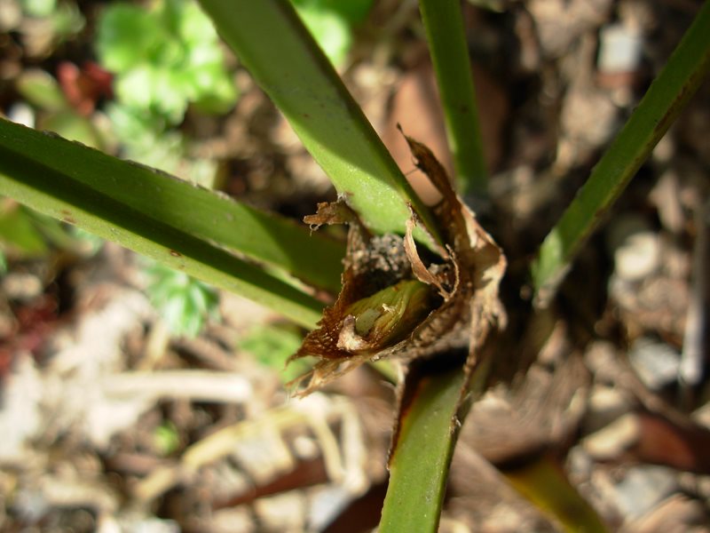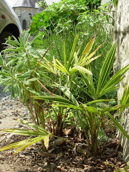 Une très bonne nouvelle : le petit Trachy planté en pleine terre l'année dernière et qui avait perdu sa lance est repartis. Le deuxième qui est à coté est toujours en bonne santé !