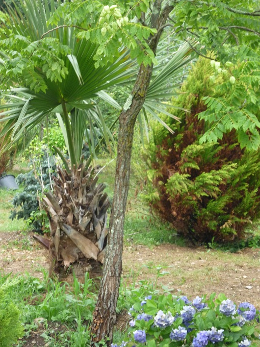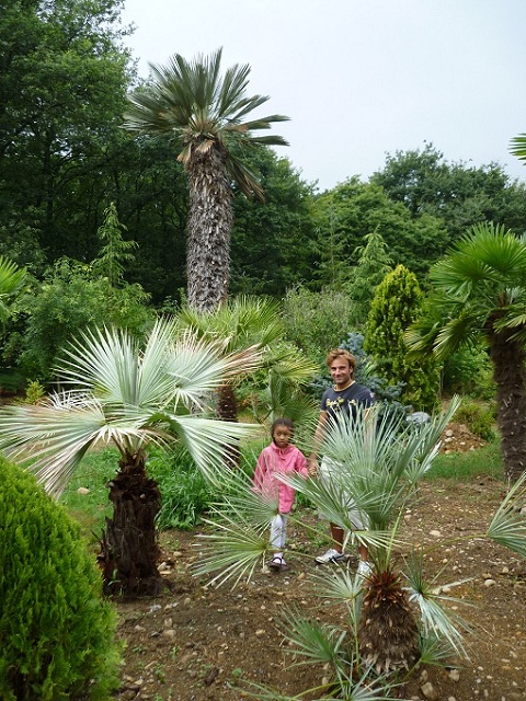 Des trithrinax à vous couper le souffle ! Des tri-pieds, voire plus, énormes, grands !... Impressionnants. Les vieux trithrinax du parc n'ont pas bronché cet hiver, du coup... citation du Père Mercier : "De colère après cet hiver j'ai planté tous ces trithrinax!" Il devrait se mettre en colère plus souvent... D'autre gros armata ont été plantés. Bref la visite est toujours aussi passionnante qu'avant.