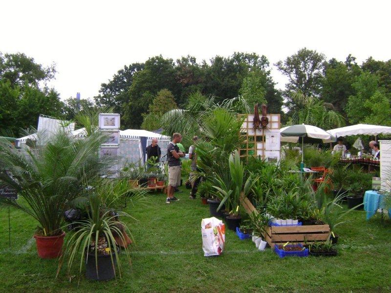 ). Ce fut l'occasion de retrouver une bonne partie de l'équipe organistrice de l'AG 2010 et, comme d'habitude, nous avons longuement échangé sur nos expériences et l'état de nos jardins après cette année un peu à l'envers (surout en terme de pluie ...). Et ce fut aussi (et surtout) l'occasion d'accueillir un bon nombre de visiteurs, attirés par la luxuriance du stand et ces drôles de personnages avec leur T-shirt vert ... (nous en l'occurence ...). Les questions furent variées, axées sur les conditions de culture, la taille des palmes, la hauteur des plantes adultes, la germination, la date de plantation, etc ... Après quelques hivers un peu rudes dans la région, il semble que l'intérêt pour le Trachycarpus fasse un retour en force
