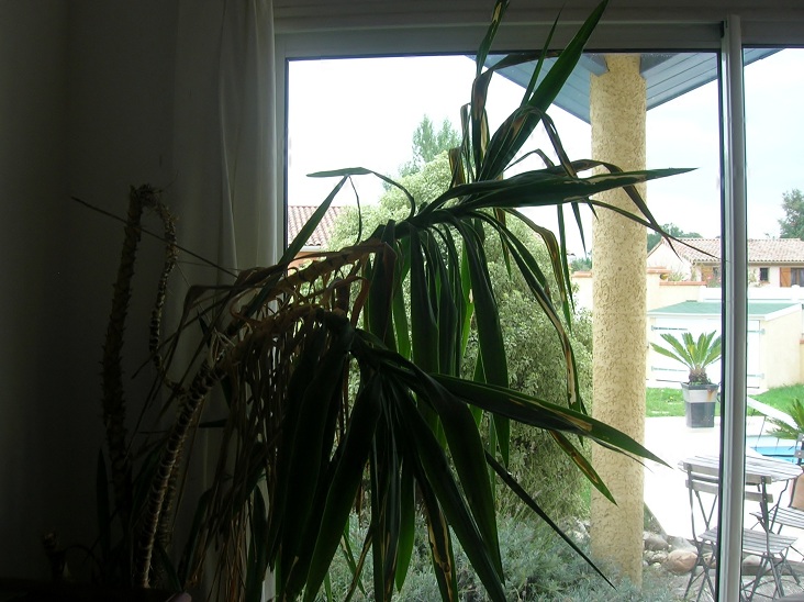Bonjours, voici de nouvelles photos de mes yuccas dont celui d'intérieur qui n'est pas en forme ainsi que du jubaea (des voisins