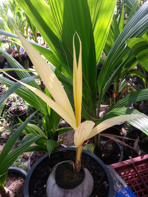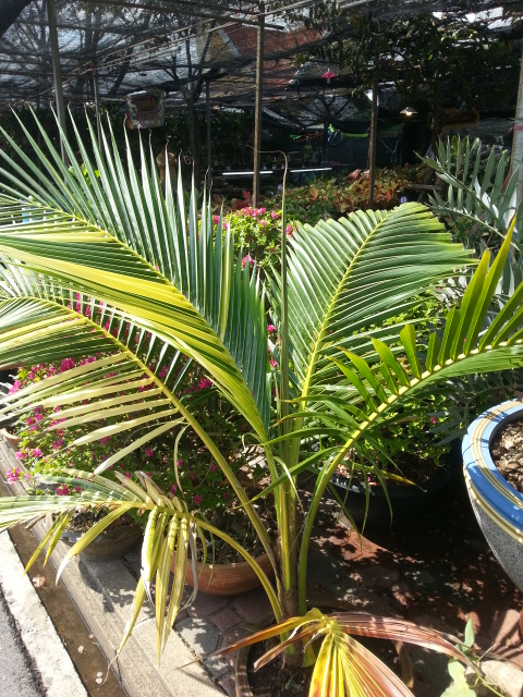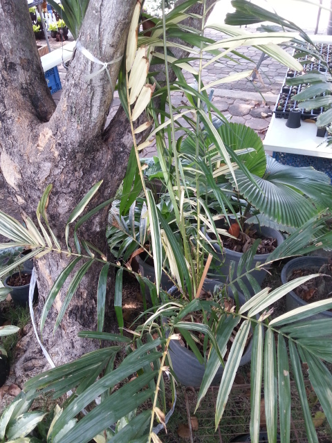 Proportionnellement aux plantes en vente, il y avait peu de palmiers, principalement à feuilles panachées. Vous trouverez ci-après le photos correspondantes. 2 ou 3 très beaux coco nucifera variegata......