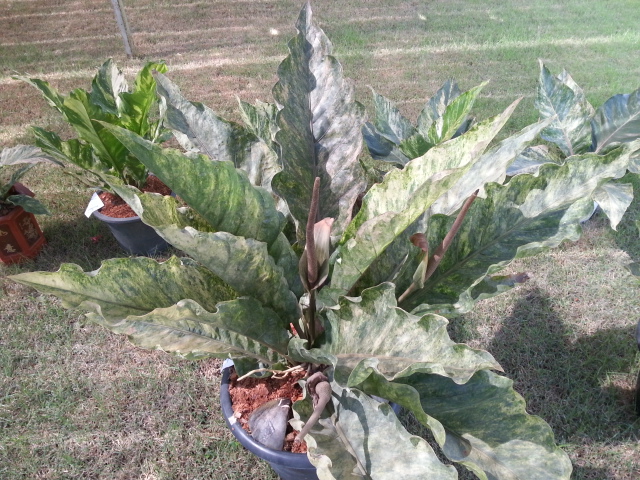Anthurium à feuilles panachées.... Magnifiques! Ce sont ceux, entre autres, qui ont reçu un prix!!!!