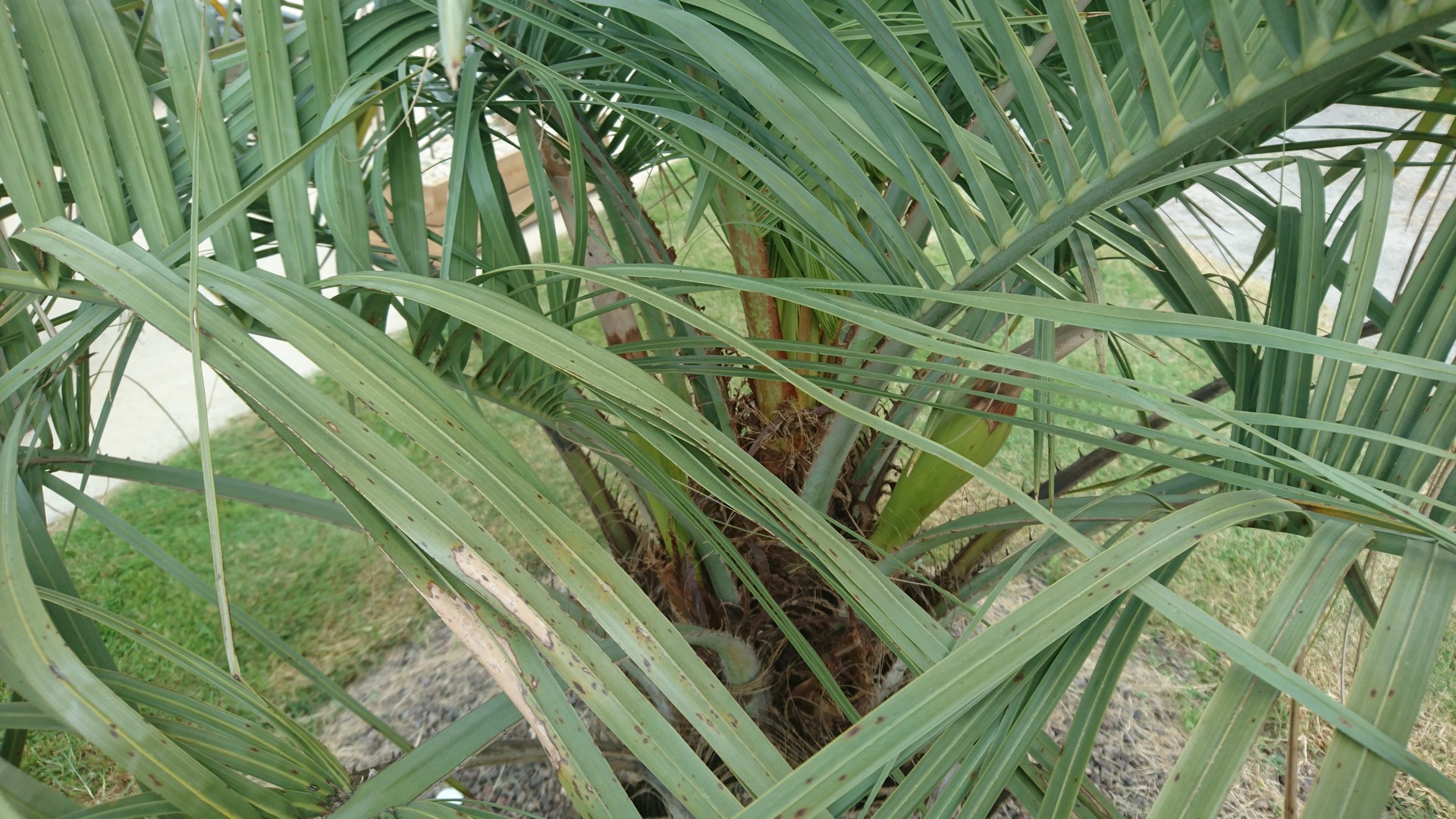 PS : Le palmier n'est pas malade, s'il n'y a pas de palmes d'un côté c'est parce qu'elles poussaient contre le mur et que je les ai taillé pour que le stipe ne déforme pas ^^
