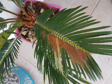 J'ai acheter 2 palmiers en espagne lors de mes vacances, le lendemain de retour a la maison vers 17h je les ai mis un peu au soleil puis 2 jours aprés sur l'un deux des taches marron se sont mise à apparaître.