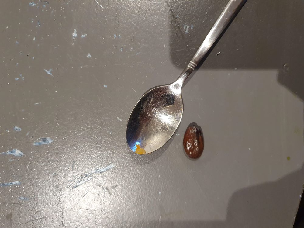 Voici la photo de la graine avec une cuillère à café pour l'echelle.