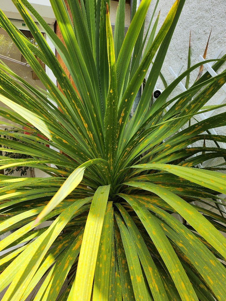 Bonjour, quelqu'un connait ces taches jaunes sur ma cordyline et comment traiter ?