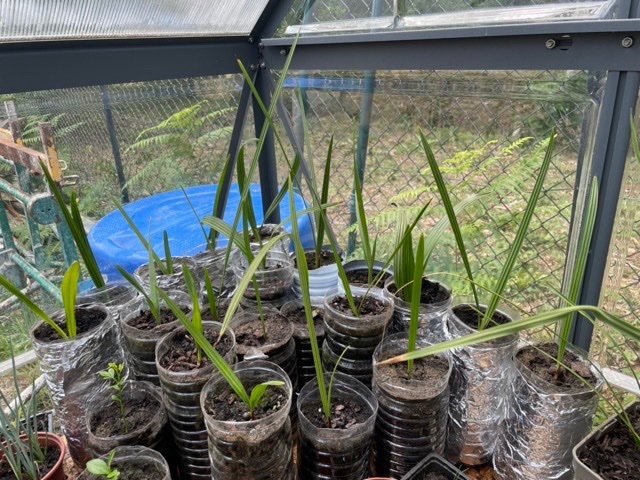 J'ai bien vu que les robustas et filiferas poussaient extrêmement vite comparé au reste (toutes les graines ont été semées entre le 01/08/22 et le 25/01/23 sauf les 2 butias en photo dans les pots noir)