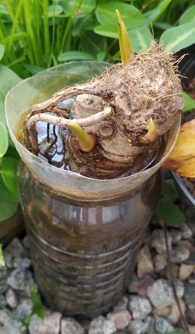 Depuis peu et à ma grande surprise, le tronc reviens à la vie. impossible pour moi de déterminer si la plante tire sa force du restant de nutriments du tronc où si elle repart le fait d'être dans l'eau, de fait, je ne sais pas si je dois couper le tronc qui est quand même assez long et remettre la totalité en terre.