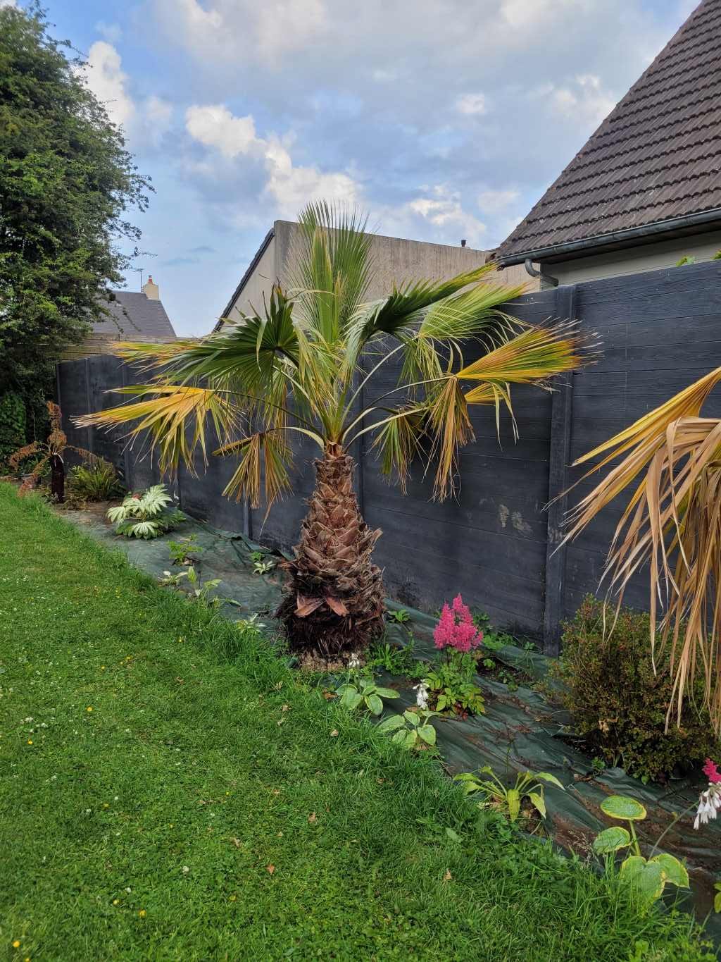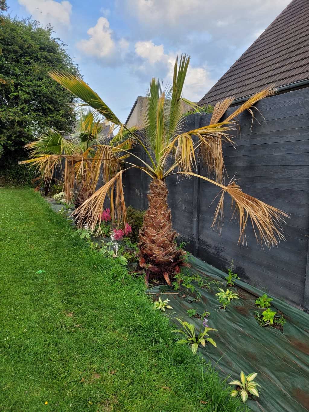 J'ai fait planter 3 palmiers (1 Phoenix et 2 Washingtonia Robusta) assez grands fin février. Pas de chance, on a enchainé sur une série de tempête qui a laissé des dégats hivernaux sur les Wash mais qui étaient toujours verts.