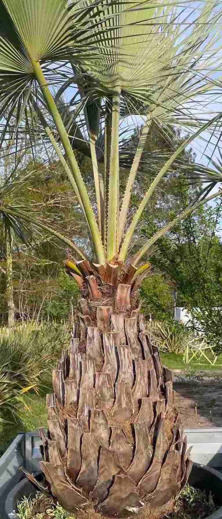 Ce que je veux dire c'est que ce palmier va chercher l'eau mais si c'est l'eau qui vient à lui attention. Sa tolérance à l'humidité n'est valable que dans un canyon très minéral et en climat doux, dans le nord de la France ils sont en général vilains, délavés par les pluies et parfois couvert de fumagine (maladie cryptogamique bénigne mais inesthétique provoquée par des moisissures noires) qui se développe sur le tomentum au niveau du rachis.